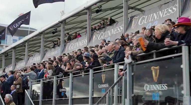 The Guinness Grandstand is situated alongside the track opposite the last fence, and offers excellent views of the racing. It is arguably the closest seating to the watch the racing.