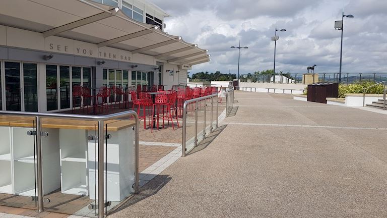 See You Then’s USP is the spacious uncovered terrace above the beautiful parade ring. The bar itself is under cover, with glass doors to the outside. Perfect for summer BBQs or drinks receptions on a sunny day, with to-die-for views of the heart of the racecourse and the hills beyond.